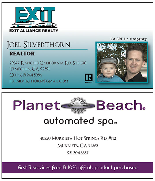 Business Card (front and Back) for Joel Silverthorn at EXIT Alliance Reealty.